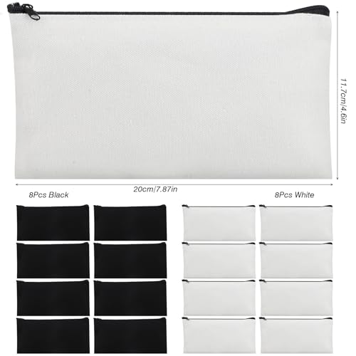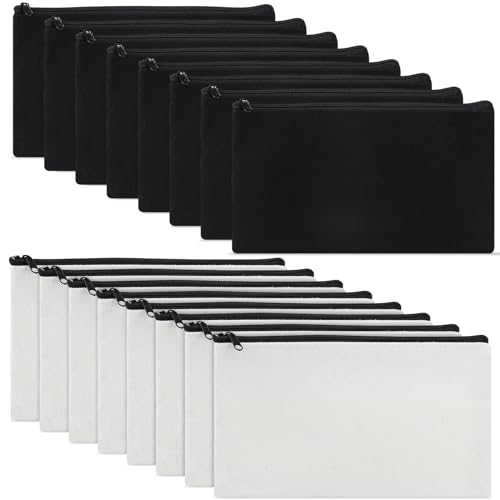 Csuntikulo 16 pezzi fai da te, sacchetti in tessuto da dipingere, astuccio da dipingere, borsa in tessuto da dipingere, per lavoro, scuola, viaggi, 20 x 11,7 cm, bianco/nero, Organizer per borse