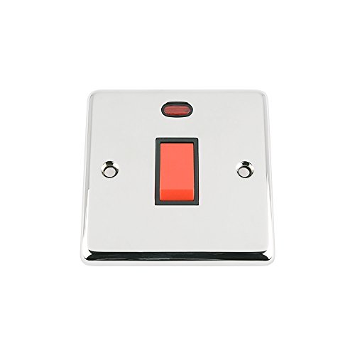 A5 CSWCCBL 45 A, interruttore per fornello/forno, classico, cromato, lucido con indicatore a neon e inserto nero