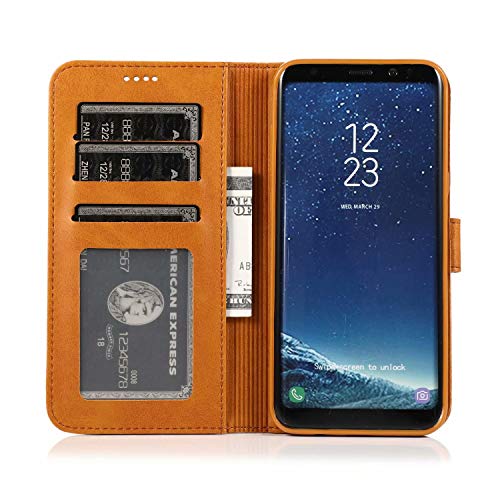 CTIUYA Custodia per Samsung Galaxy S8, Cover Flip Case in Pelle Custodia Portafoglio con Porta Carte Magnetica Antiurto Protettiva Completa a Libro Cuoio Custodia per Samsung Galaxy S8,Giallo
