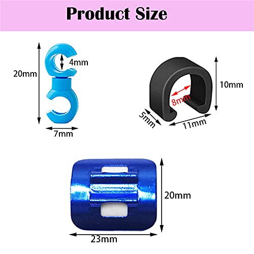 ◆ Confezione: confezione che include 10 morsetti blu rotanti con gancio a S, 6 fibbie blu in lega di alluminio autoadesive per telaio e 6 clip a C per bici nere.