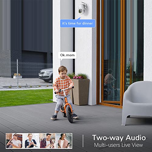 ✅【355°Pan/140°Tilt & Allarme Sonoro e Luminoso】Con un'eccellente funzionalità orizzontale di 355° e verticale di 140°, questa telecamera ptz per esterni wifi può fornire un campo visivo più ampio di qualsiasi altro. È possibile monitorare la maggior parte delle aree della tua casa attraverso la singola telecamera estern. Il sistema di allarme audio della telecamera di sicurezza esterno può rilevare situazioni anomale e alterarti in tempo per allontanare gli ospiti non invitati.