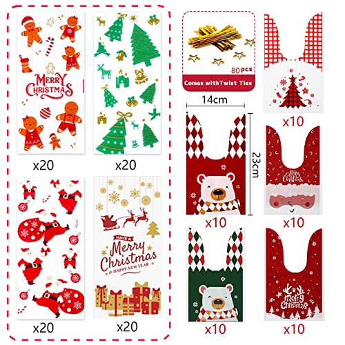 【Pacchetto di Valore Contiene】 80 Sacchetti Natalizi in Cellophane (80 fascette) e 50 Sacchetti Natalizi per Caramelle, abbastanza per soddisfare le nostre diverse esigenze.