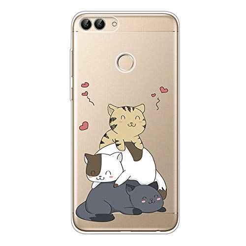 CUAgain Cover Compatibile per Huawei P Smart 2018 Silicone Trasparente con Disegni Ultrasottile Slim Antiurto Ultrasottile Case Transparent Kawaii TPU Cover Bumper Custodia Donna Uomo Gatto