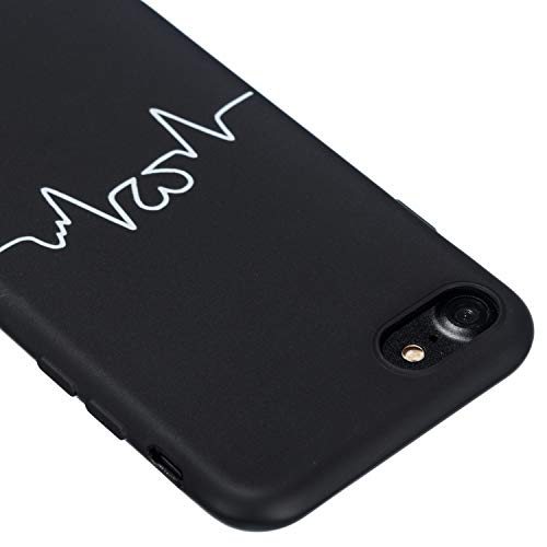 CUAgain Cover Compatibile per iPhone 8/iPhone 7/iPhone SE 2020 Silicone con Disegni Motivo Nero Gomma Antiurto CaseUltrasottile Resistente Protettiva Bumper Custodia per Uomo Donna,Curva del Cuore