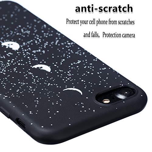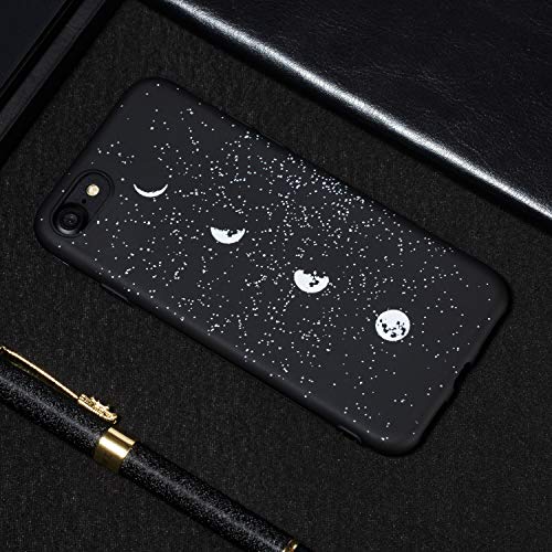 CUAgain Cover compatibile per iPhone 8/iPhone 7/iPhone SE 2020 Silicone con Disegni Motivo Nero Pianeta Gomma Antiurto Case Ultrasottile Resistente Protettiva Bumper Belle Custodia per Uomo Donna,Luna