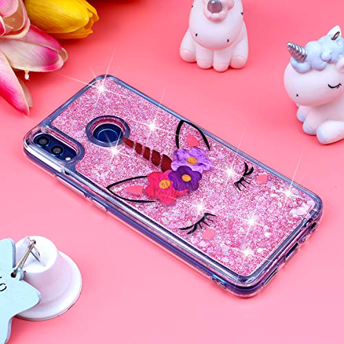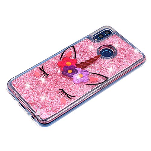 CUAgain Cover Compatibile per Samsung Galaxy A20e 2019 Silicone Trasparente 3D Disegni Antiurto Glitter Bling Case Transparent Cover Bumper Custodia Donna Uomo Unicorno Rosa