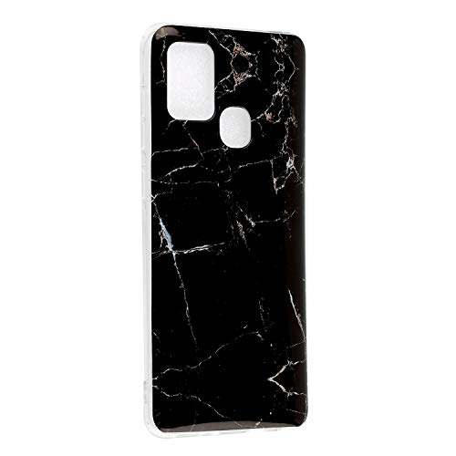 CUAgain Cover Compatibile per Samsung Galaxy A21s 2020 Silicone con Disegni Motivo Marmo Gomma Antiurto Case Ultrasottile Resistente Protettiva Belle Bumper Custodia Uomo Donna Nero
