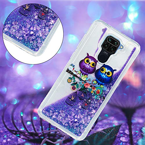 CUAgain Cover Compatibile per Xiaomi Redmi Note 9 Glitter Liquido Trasparente Silicone 3D Disegni Antiurto Bling Case Transparent Kawaii Cover Bumper Custodia per Donna Uomo Gufo