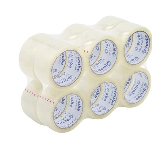 9 Cube - 12 Rolls Clear Packaging tape - Nastro adesivo resistente, resistente e sicuro per grandi pacchi e scatole. (48 MM x 66 m)