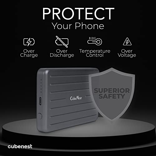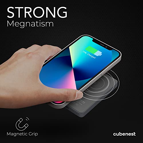 CubeNest Powerbank magnetico wireless compatibile con iPhone 12/13 Serie, AirPods e altri dispositivi dotati di Magsafe | Batteria esterna per cellulare da 15 W | Robusta lavorazione in alluminio