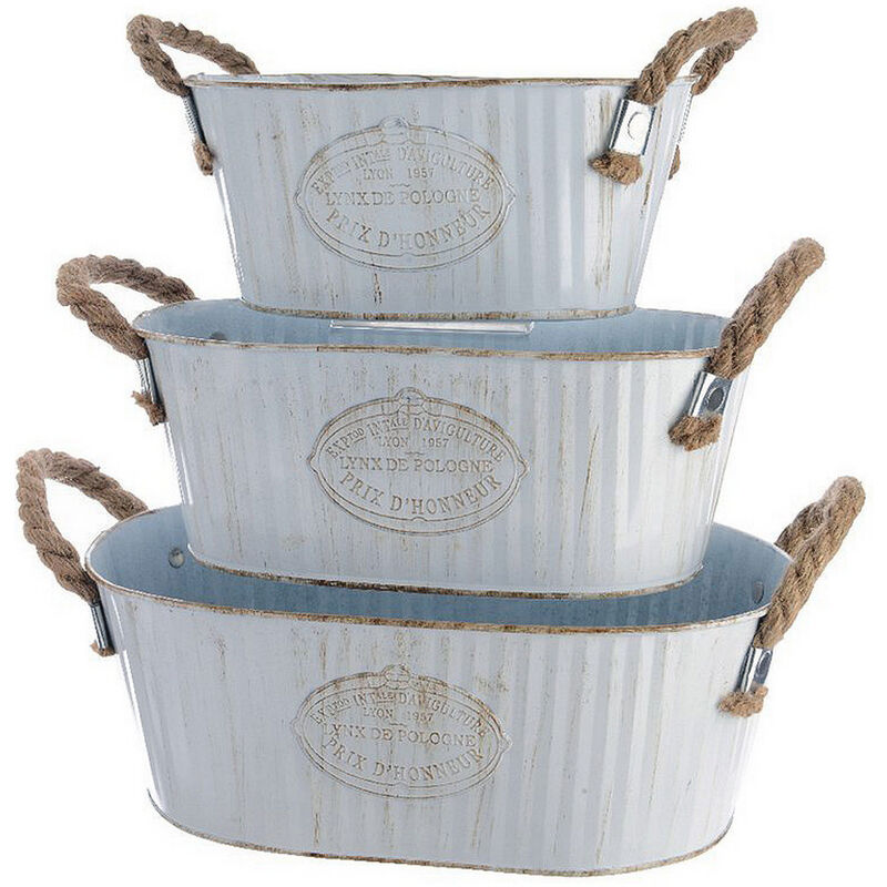 Se ti piace curare ogni singolo dettaglio della casa ed essere sempre alla moda in tema di prodotti che ti renderanno la vità più facile, compra Set di cubi Decoris Corda Ovale Con manici Metallo Bianco Zinco (3 Pezzi) al miglior prezzo. Colore: Bianco Materiale: Metallo Zinco Corda Numero di pezzi: 3 Pezzi Caratteristiche: Con manici Forma: Ovale Tipo: Set di cubi Dimensioni appross.: 29,5 x 18,5 x 11 cm 25,5 x 14,5 x 10 cm 20,5 x 12 x 9 cm