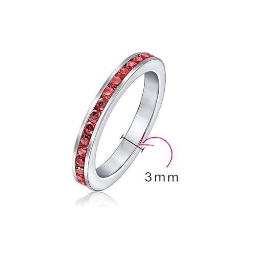 BELLEZZA ETERNA - Da sole o sovrapposte a un'altra eternity band, queste splendide pietre CZ del mese di nascita ravviveranno il vostro look. Indossatela come fede nuziale, anello di anniversario o anello del mese di nascita per un look che vi piacerà in ogni giorno della settimana. Con una comoda larghezza di 3 mm, questi anelli a fascia impilabili passeranno facilmente da una giornata in ufficio a una serata in città. Granato simulato CZ mese di nascita di gennaio Anello di eternità misura 7