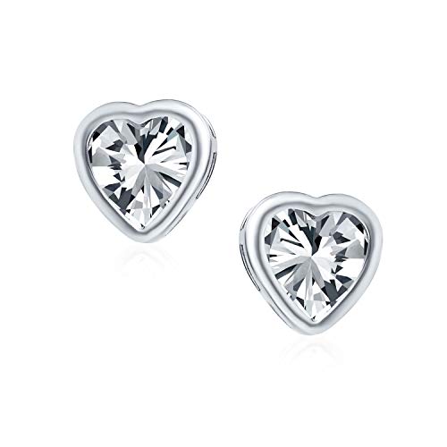 1Ct Cubic Zirconia Lunetta Set Cuore A forma di cuore CZ Solitario Orecchini per donna per la ragazza 925 Sterling Argento 7MM