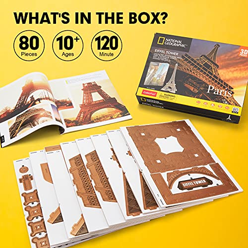 CubicFun Puzzle 3D Kit Modello Torre Eiffel National Geographic, Regali Puzzle Architettura Parigi con Libretto, 80 Pezzi