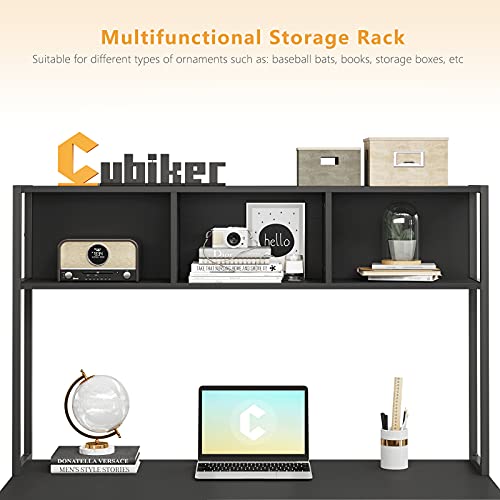 Cubiker - Scrivania a forma di L con scaffale portaoggetti, 150 x 120 cm, scrivania angolare per computer, tavolo da gaming con ripiani, per casa e ufficio, salvaspazio, nero