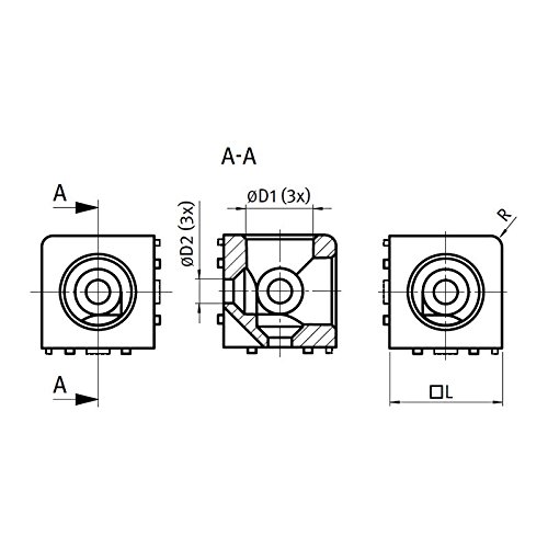 Cubo connettore 3d 30 B di tipo Nut 8 con kit di fissaggio 3 X M8 x 25