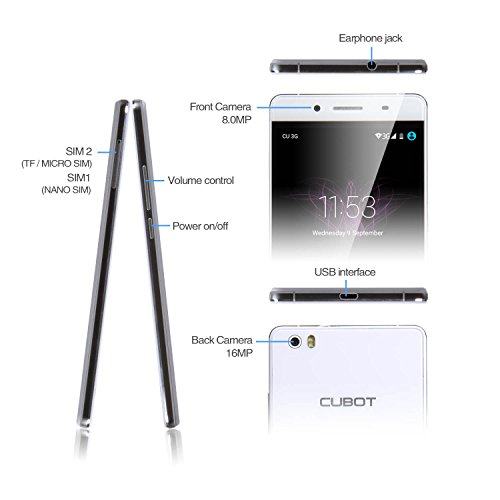 Cubot X16 2 G 3 G LTE/FDD/4G Android 5.1 FHD 1080P 5 pollici smartphone (senza contratto) 2500 mAh mtk6535 Quad-Core 1.3 GHz 2 GB RAM + 16GB ROM Dual fotocamera 8 MP + 16MP Dual Sim Dual Standby OTG GPS WIFI HotKnot schuttzhülle gratuita Nero Bianco