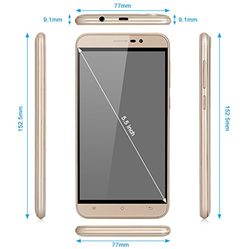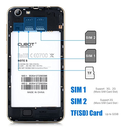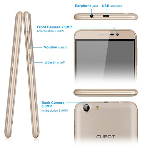 5.5'' CUBOT NOTE S IPS Schermo HD 3G Smartphone Android 6.0 MT6580 Quad Core 1.3GHz Cellulare 2GB RAM+16GB ROM Dual SIM HotKnot Telefono Cellulare WIFI Oro