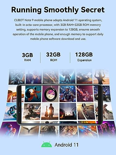CUBOT NOTE 9 Smartphone 5.99 HD Pollici, 5900 mAh Batteria, Android 11 Cellulare, 32GB ROM 512GB Espandibile, 3GB RAM, 4G Dual SIM Telefono Supporto Face ID, GPS (Verde)