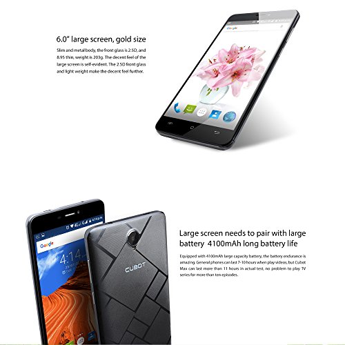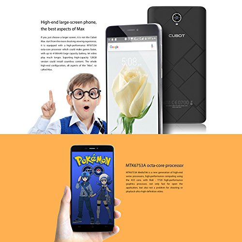 CUBOT Max 4G LTE Smartphone 6.0‘' IPS Android 6.0 (MTK6753A 64-Bit, 1.3GHz Octa-Core, 3G+32GB, Camara 13.0MP, Schermo IPS HD 720 * 1280px 4100mAh Grande Batteria OTG HotKnot GPS)