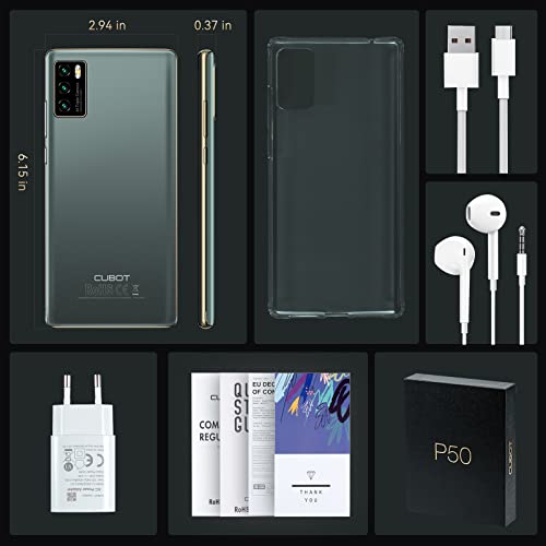 CUBOT P50 Smartphone Android 11, Telefono Cellulari 6,2 Pollici, Fotocamera da 20 MP + 12 MP, 6 GB RAM 128 GB ROM Processore Octa-core, Batteria 4200 mAh, 4G Dual SIM, Face ID NFC, Verde