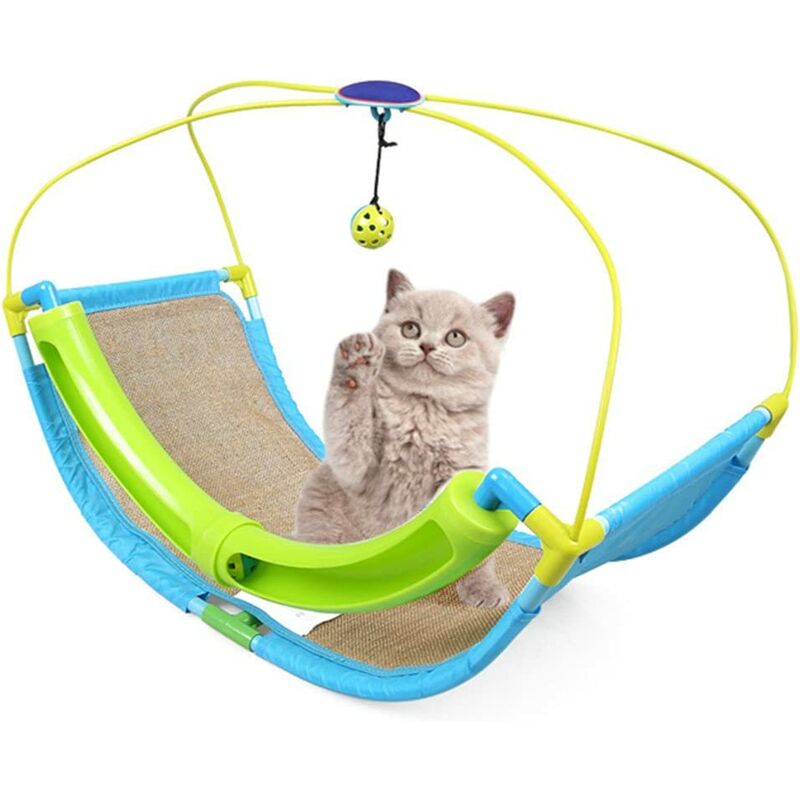 Un giocattolo perfetto - : i giocattoli per gatti portano gioia al tuo gatto. Appendere una palla tiene occupato il tuo gatto mentre usa il lettino antigraffio. Giocando felicemente, anche intelligenza e udito del gatto sono migliorati. [Culla multifunzionale]: design innovativo della culla, giocattoli per gatti con amaca e artigli di gatto, che offrono un ambiente di gioco e graffi confortevole per gatti può riposare e giocare a lungo. Puoi dormire, strillare e giocare allegramente, in modo che il gatto non sia solo a casa. [Sicuro e comodo]: Il nostro letto per gatti è realizzato in PVC ecologico, ABS e lino, con una buona colorazione, una buona resistenza agli agenti atmosferici e una buona stabilità. Il tappetino in lino è una buona amaca e un tappeto resistente ai graffi. Il letto per gatti è robusto, resistente ai graffi, fresco e traspirante, creando un ambiente confortevole per i gatti. [Robusto e durevole]: le dimensioni sono 23,6 x 18 x 12 pollici. Il design segue i principi