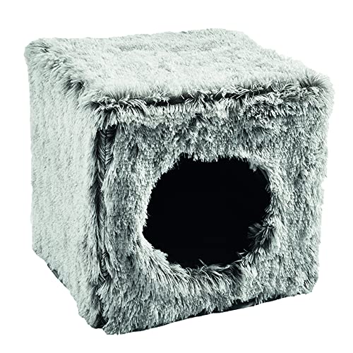 CUCCETTA CUBO per Animali POILU, CASETTA in Pelliccia Sintetica, SUPERSOFFICE, 38X38X38 CM, Colore Nero
