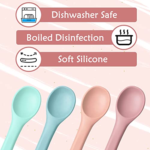 Cucchiai per bambini 4 pezzi, cucchiai per lo svezzamento Cucchiaio per l'alimentazione in silicone Cucchiaio per posate per bambini Set per l'alimentazione