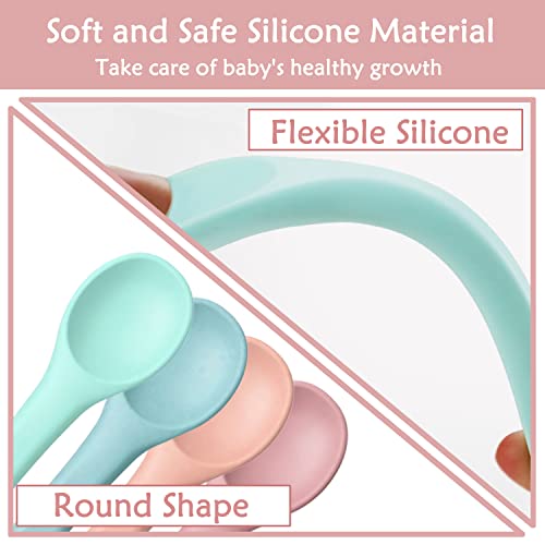 [Ampie applicazioni]: il morbido cucchiaio per bambini in silicone è perfetto per lo svezzamento guidato dal bambino, i pasti quotidiani, l'ora della merenda e la cena fuori, che può servire come cucchiaio da autoalimentazione o stoviglie per esercitare la capacità di presa del bambino. Questi cucchiaini sono anche un bel regalo per il compleanno di tuo figlio, Natale, Capodanno, ecc.