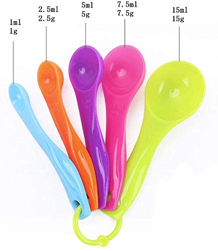 Cucchiai dosatori in plastica colorata 5 cucchiai dosatori in diverse dimensioni e colori per la cucina da forno o da forno