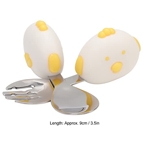 Set di Cucchiai Forchetta per Bambini con Manico Corto, Forchette e Cucchiai per Bambini Portatili in Acciaio Inossidabile per Asili Nido (Bianco)