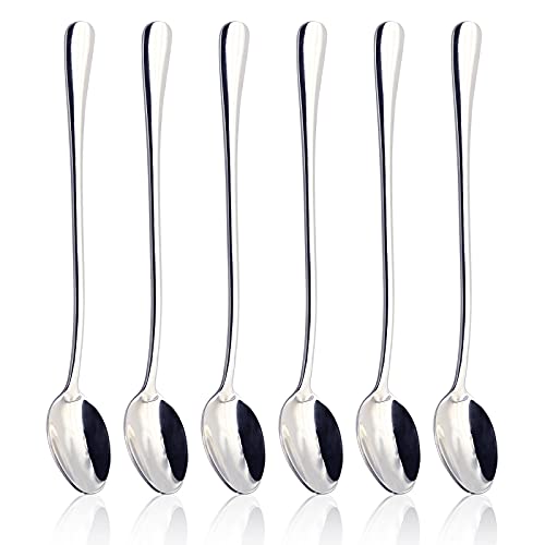 Set di 6 cucchiai lunghi da 19 cm, in acciaio inox lucidato, lavabili in lavastoviglie per tè freddo, caffè, cocktail, latte shake, bevande fredde
