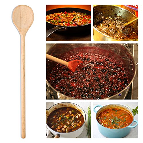 Il grande cucchiaio in legno massiccio è adatto per utensili da cucina antiaderenti. Adatto al forno fino a 260 gradi Celsius circa.