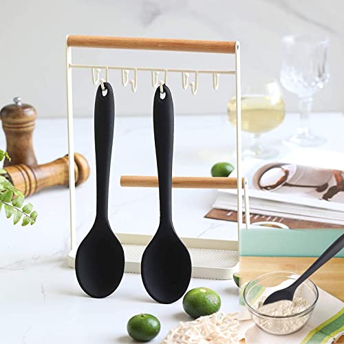 【Design Sofisticato】 Il Cucchiaio In Silicone Ha Un Manico Lungo Che È Comodo Da Impugnare E Progettato Ergonomicamente Per Rendere La Cottura E L'agitazione Più Convenienti E Meno Laboriose. L'estremità È Progettata Con Fori Per Appenderla Facilmente E Risparmiare Spazio Di Archiviazione.