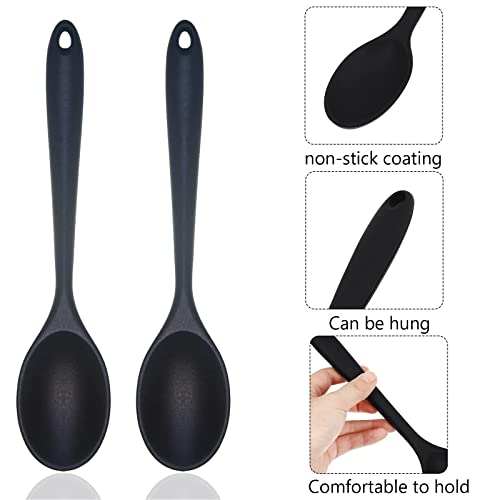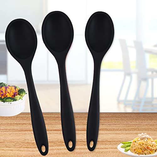 Cucchiai In Silicone Resistenti Al Calore Da Cucina Antiaderenti 3 Pezzi Cucchiai Strumenti Di Miscelazione Agitazione Cucchiai Da Cucina Per Mescolare Scavare E Mescolare 21x4.5cm (Nero)
