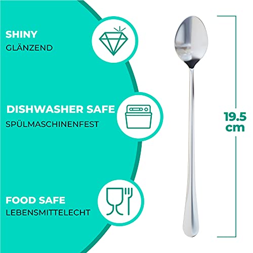 Set di 12 Cucchiaini Lunghi - Acciaio Inox - Lavabili in Lavastoviglie - Cucchiaino a Manico Lungo per Dolce, Cocktail