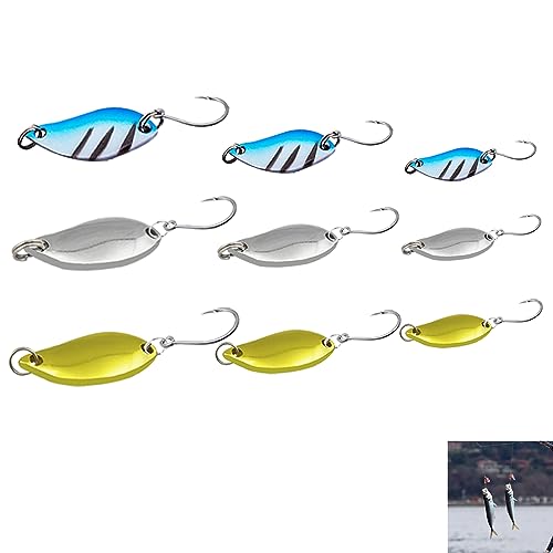 Set di Trote Cucchiaio: Il set di esche per trote comprende 9 diversi stili e pesi di esche, tra cui 3 x 2,5 g esche, 3 x 3,5 g esche e 3 x 5 g esche. I colori e i pesi sono diversi e adatti alle vostre diverse esigenze di pesca, quindi non dovete spendere soldi extra per altri accessori