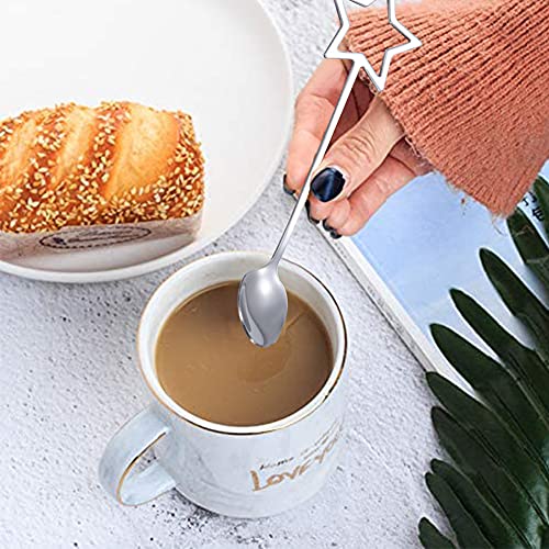【Cucchiaio in acciaio inossidabile】: 3 cucchiai stella d'argento e 3 cucchiai stella d'oro. Design creativo della testa del cucchiaio a forma di stella, forma elegante, piena di amore per la vita.