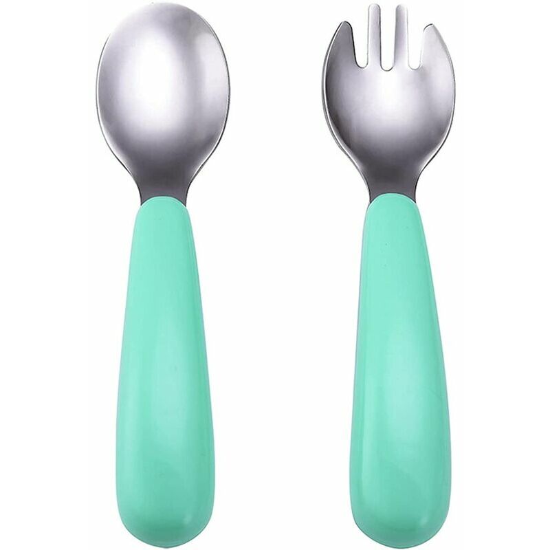 Set cucchiaio + forchetta dalle forme arrotondate. le prime posate per bambini dai 6 mesi ai 3 anni! ERGONOMICHE: forma arrotondata, nessun rischio di lesione gengivale PRATICHE: forma arrotondata, si appoggiano sul piatto senza scivolare e fanno è più facile prendere il cibo Ideale quando il bambino inizia il cibo solido. sicure, queste posate si adattano alle dimensioni delle mani e della bocca dei più piccoli. Lavorazione accurata e sicurezza dei materiali: estremità in acciaio inossidabile, manico in plastica abs, leggero e resistente