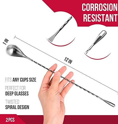 Cucchiaio da Cocktail in Acciaio Inox Kit Barman 2 Cucchiai da Miscelazione Barman Inossidabile Lungo 30Cm Antiscivolo Manico Design Spirale Argento
