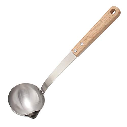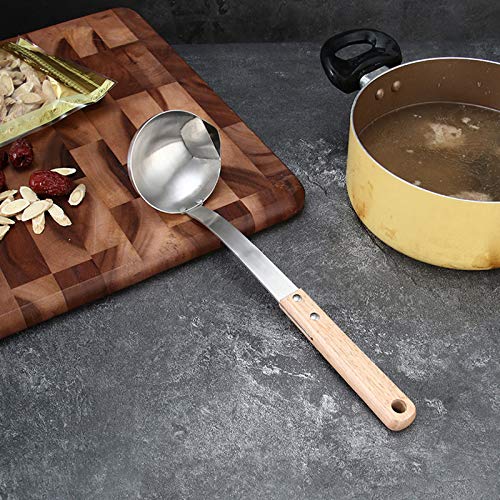 ZQO Cucchiaio Filtro Olio in Acciaio Inossidabile, Cucchiaio filtrante scolapasta da Cucina con Manico in Legno Separatore Olio per zuppa per scremare Grasso sugo e Schiuma