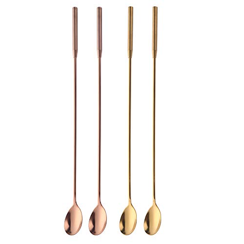 Do Buy Cucchiaio a Manico Lungo Cucchiaio da Cocktail 306mm Cucchiaio da Bar Acciaio Inossidabile 4 Pezzi per stratificazione Macchiato da longdrink Bicchieri Alti Espresso, 2 d'oro + 2 Oro Rosa