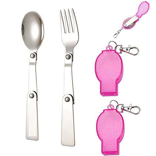 Cucchiaio Pieghevole,Cucchiaio Portatili e Pieghevoli in Acciaio Inox,Forchette e Cucchiai Pieghevoli,Posate Portatili Posate Pieghevoli con Scatola per Campeggio Viaggi,Picnic All'Aperto,2 Pezzi