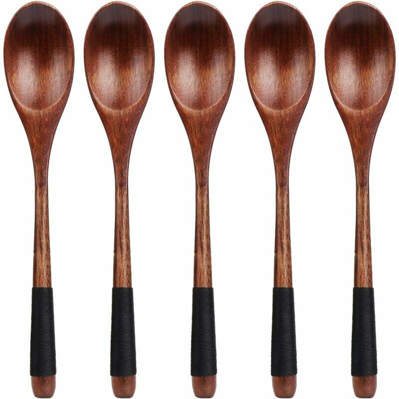 set cucchiaio di legno è realizzato in legno Nanmu naturale, corpo resistente e robusto, la pelle è liscia e chiara. Sano, dipinto naturale, privo di BPA, PVC o ftalati. ? Cucchiaio comodo: gli utensili da cucina in legno sono sicuri da usare su tazze, piatti e ciotole, oltre che resistenti ai graffi. Non può congelarsi o scottarsi le mani, indipendentemente dalla temperatura di l & #39;