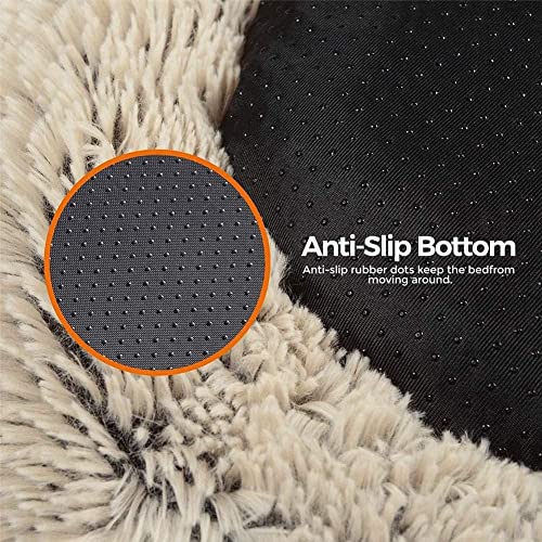 【MATERIALE SICURO】: la fodera rotonda del lettino per cani è realizzata in finta pelliccia ed è morbida al tatto. L'interno è imbottito con morbido cotone polipropilene. Il fondo è realizzato in nylon impermeabile e antiscivolo, che impedisce alla cuccia di scivolare e di bagnarsi.