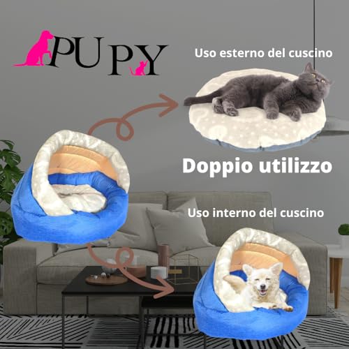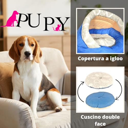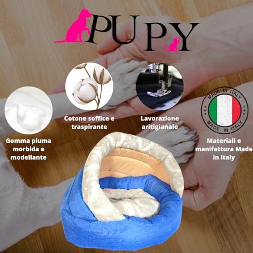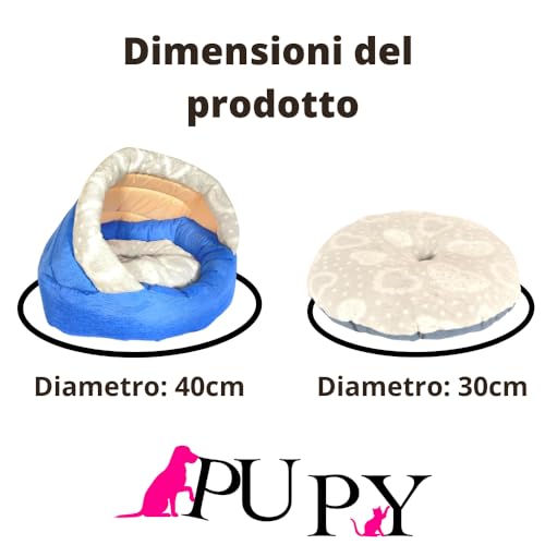 PU PY - Cuccia per Cane da Interno Invernale Desing Igloo, Diametro 40cm in 100% cotone Made in Italy, lettino + cuscino per cani taglia S, cuccia gatto interno o cane piccolo (40 cm, Torquoise)