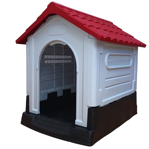 Cuccia per Cani di Piccola e Media Taglia, Casetta in Resina, con Tetto a Spiovente e Base Isolante, Ideale per Esterno e per la Casa, Facile da Montare - Colore: Beige/Rossa cm. 68x57x66