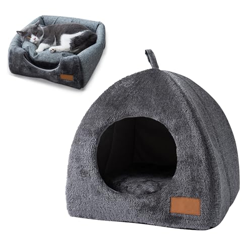 【Caldo e confortevole】 Nostra accogliente cuccia per gatti realizzata in morbido tessuto felpato con interni soffici e cuscini rimovibili imbottiti in comodo cotone PP, fornisce al tuo animale domestico peloso un posto pulito, caldo e confortevole dove dormire.
