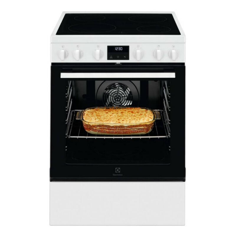Cucina in vetroceramica Electrolux LKR64850AW comprensiva di forno a pirolisi autopulente e piano cottura in vetroceramica a 4 fuochi Pulizia senza strofinare: con il forno a pirolisi autopulente puoi raggiungere livelli di pulizia professionali con un solo tocco. Trasforma i residui in cenere che può essere rimossa con un panno umido Riscaldamento rapido, con il piano in vetroceramica: Riscaldamento rapido e potente con il piano in vetroceramica. La superficie in vetro liscio, proprio come un piano a induzione, può essere facilmente pulita all'occorrenza.Cottura uniforme: grazie alla funzione multifunzione a calore pulsato, la temperatura di questo forno è più uniforme e i tuoi piatti sono cotti alla perfezione.Una porta tuttovetro, facile pulire: I bicchieri sulla porta del forno sono facili da pulire. L'anta e i vetri sono rimovibili senza attrezzi e ti permettono di pulirli in un batter d'occhio Pulisci il piano in un batter d'occhio: questo piano ha una superficie perfettamente