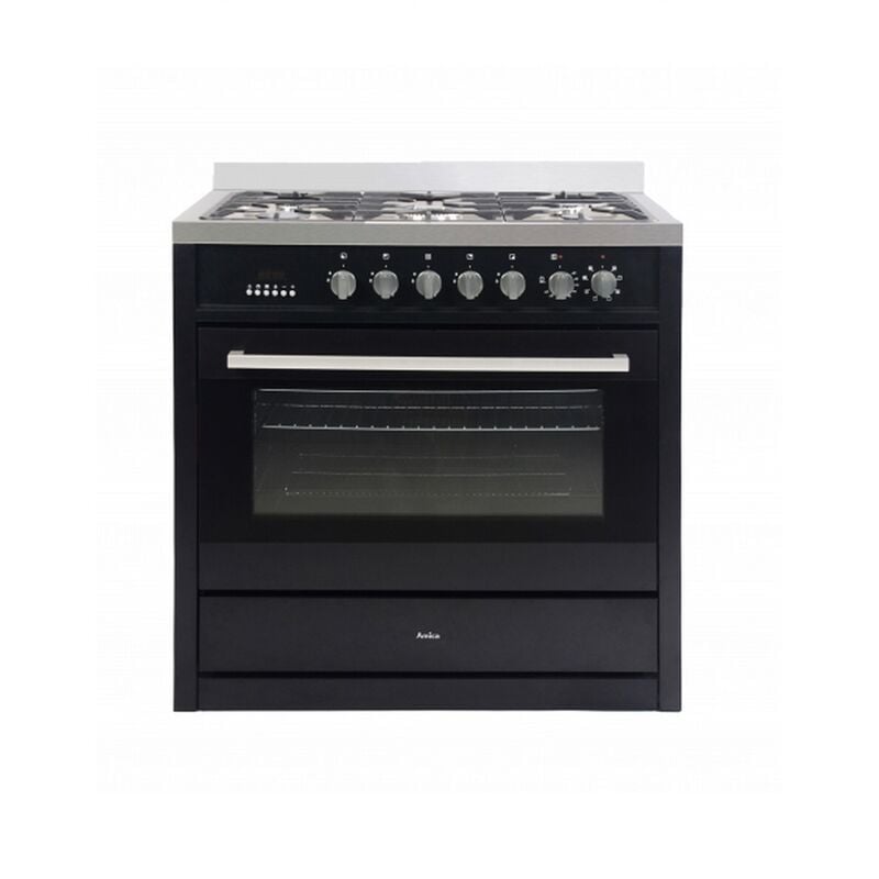 ACMS2005XB Cucina a gas AMICA composta da un piano cottura a gas a 5 fuochi e un ampio forno dalla capacità di 103 litri. Tipo di prodotto: Piano cottura a gas. Classe energetica: A. Superficie della piastra:: acciaio inossidabile. Capacità del forno in litri: 103 l. Potenza totale: 3.428 kW. Numero di zone cottura/bruciatore: 5 unità. Pianoforte da cucina: sì. Tipo di cucina: Gas.. Tipo di forno: multifunzione. Numero di funzioni: 8. Tipo di pulizia: Catalisi. Calore ventola: sì. Tipo di accensione: accensione con una sola mano. Tipo di illuminazione: Illuminazione alogena. Materiale della griglia: ghisa. Pareti catalitiche: sì. Porta temperata: sì. Accessori inclusi: Teglia antiaderente, Griglia. Colore nero. Altezza: 90 cm. Larghezza: 90 cm. Profondità: 60 cm. Peso netto: 80 kg.